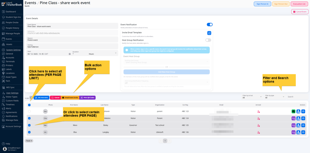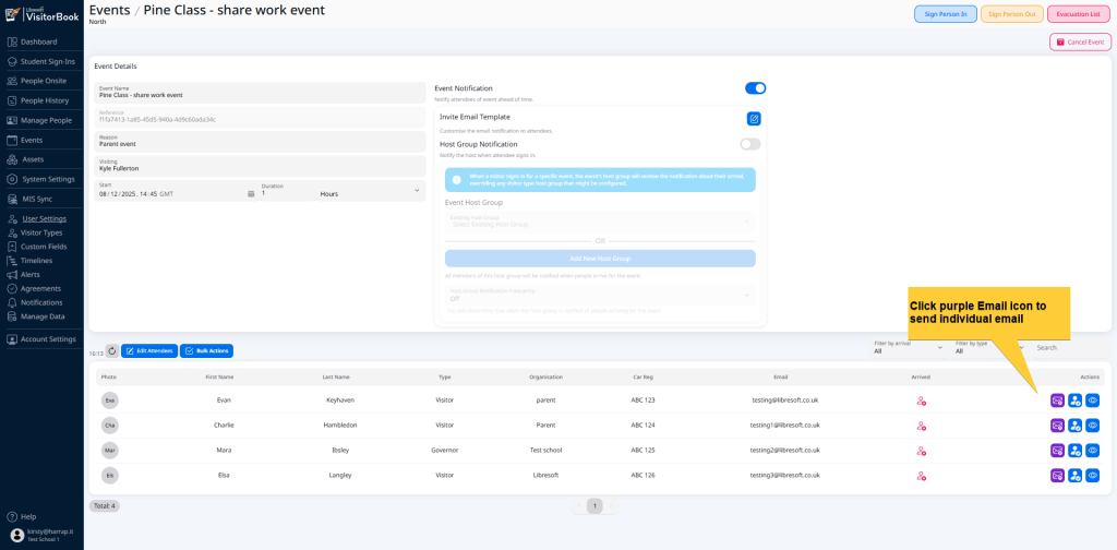 NEW! Send event notification emails to visitors ahead of time. These can be sent individually or in bulk to multiple people at once.