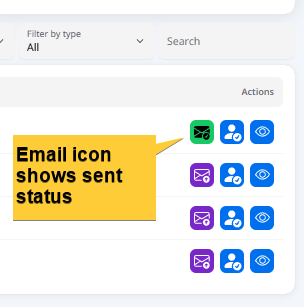 | Click the Send Notifications button. | The system displays a green banner that indicates the emails are sending. Once sent the purple Email icon changes to green (Email invite sent). | Sent messages are also shown in the Notification History section of the Notifications page (located in the User Settings menu). |