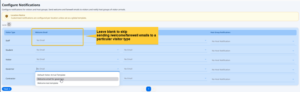 NEW! Your welcome/farewell email templates are ready to go. To send them, you first need to assign them to visitor types.